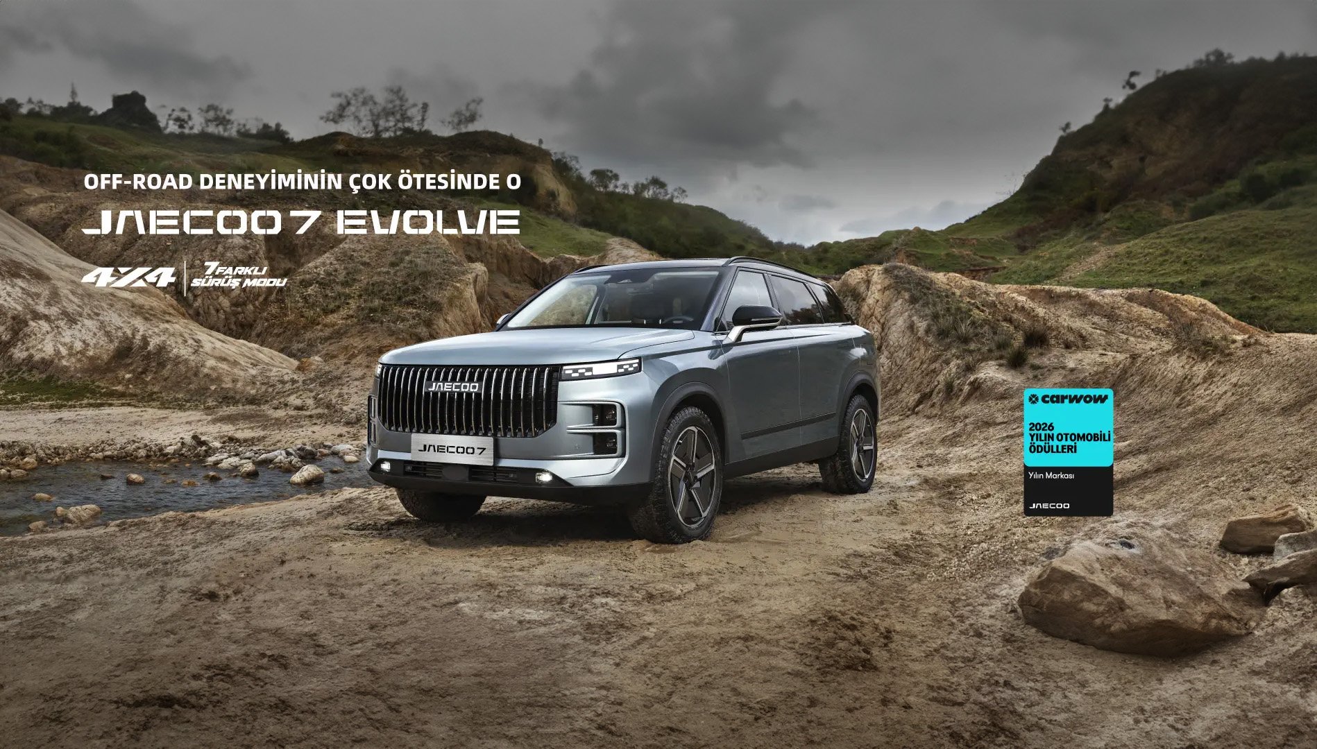 JAECOO 7 Evolve, arazi odaklı tasarımı ve 4×4 teknolojisi ile zorlu koşullarda üstün performans sunar. Taşlı patikalar, çamurlu yollar veya dik yamaçlar fark etmez. Evolve her araziye hazır.
